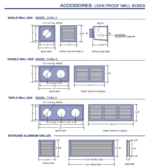 Leak Proof Fresh Air Intake Wall Box SWBL- INTAKE, DWBL- INTAKE, TWBL- INTAKE