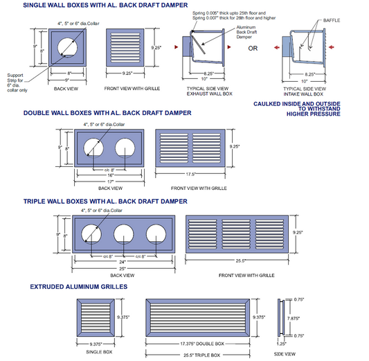 Leak-proof Wall Boxes With Aluminum Backdraft Damper SWBL-8 - Al, DWBL-8 - Al, TWBL-8 - Al